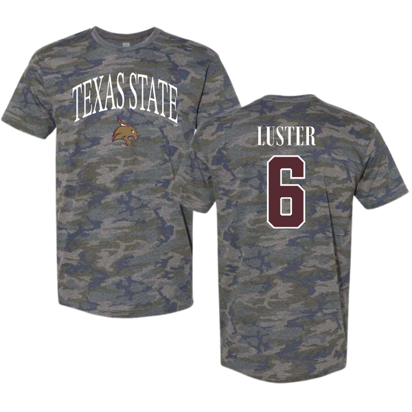 Texas State University Football Vintage Camo Tee - #6 Keldric Luster