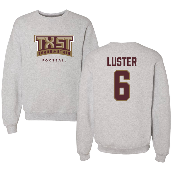 Texas State University Football Gray Crewneck - #6 Keldric Luster