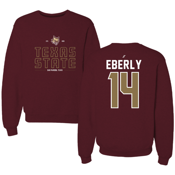 Texas State University Baseball Maroon General Crewneck - #14 Keller Eberly