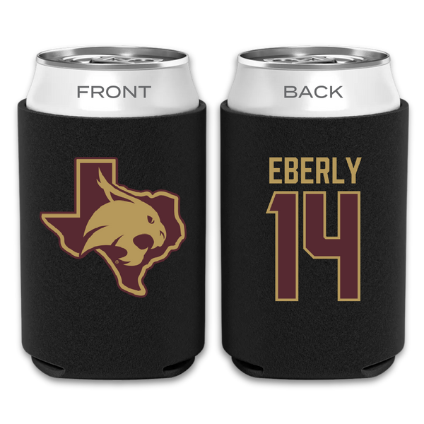 Texas State University Baseball Black Can Cooler - #14 Keller Eberly
