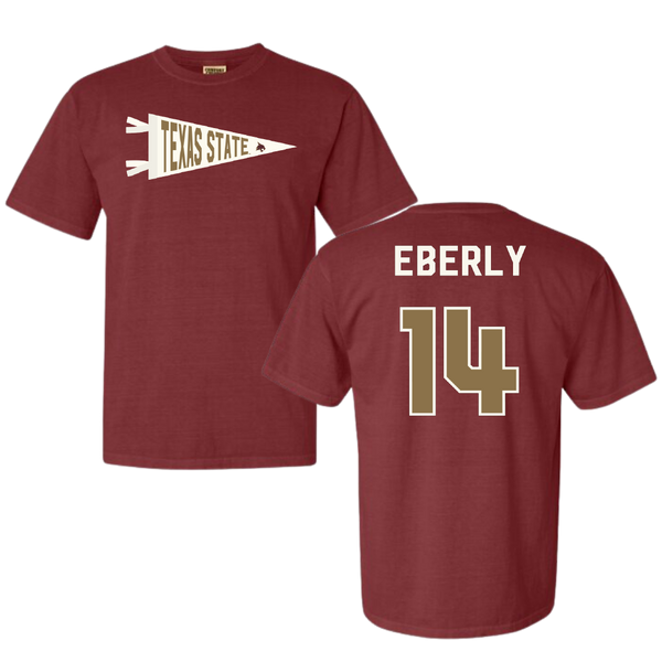 Texas State University Baseball Maroon Pennant Comfort Colors Tee - #14 Keller Eberly