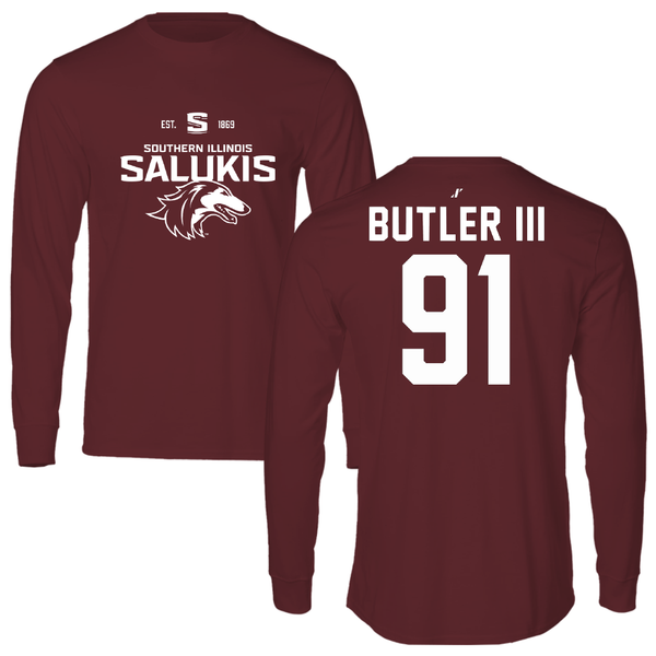 Southern Illinois University at Carbondale Football Maroon Touchdown Long Sleeve - #91 Kenneth Butler III