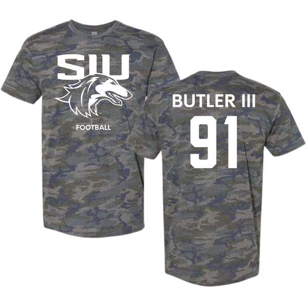 Southern Illinois University at Carbondale Football Vintage Camo Tee - #91 Kenneth Butler III