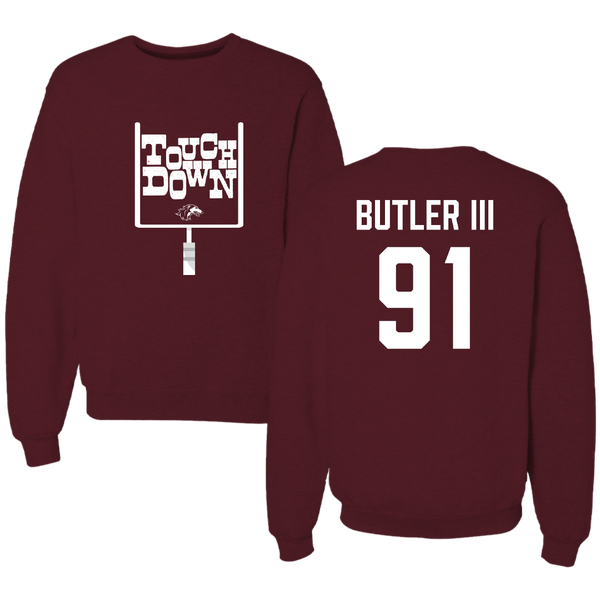Southern Illinois University at Carbondale Football Maroon Touchdown Crewneck - #91 Kenneth Butler III