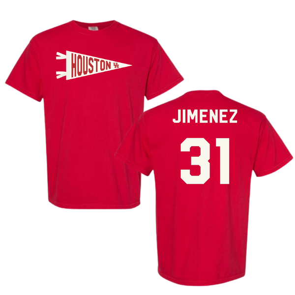 University of Houston Baseball Red Pennant Comfort Colors Tee - #31 Kenneth Jimenez
