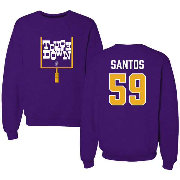 University at Albany Football Purple Touchdown Crewneck - #59 Kenneth Santos