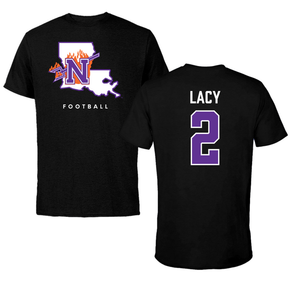 Northwestern State University Football Black Block Tee - #2 Kennieth Lacy
