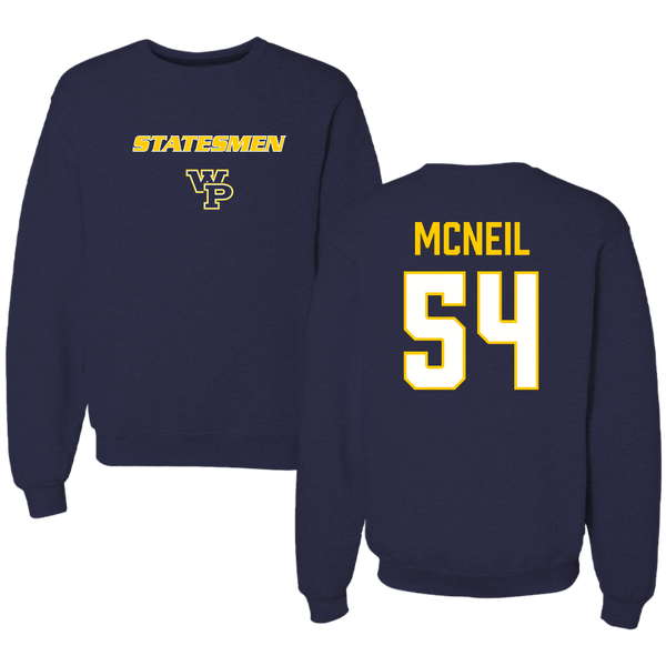 William Penn University Football Navy Crewneck - #54 Kenron McNeil