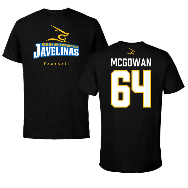 Texas A&M University-Kingsville Football Black Tee - #64 Kevaughnte McGowan