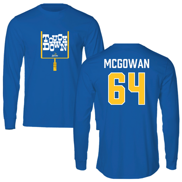 Texas A&M University-Kingsville Football Blue Touchdown Long Sleeve - #64 Kevaughnte McGowan