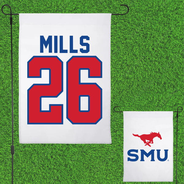 Southern Methodist University Football White Garden Flag - #26 Keyshon Mills