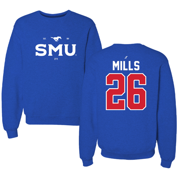 Southern Methodist University Football Blue General Crewneck - #26 Keyshon Mills