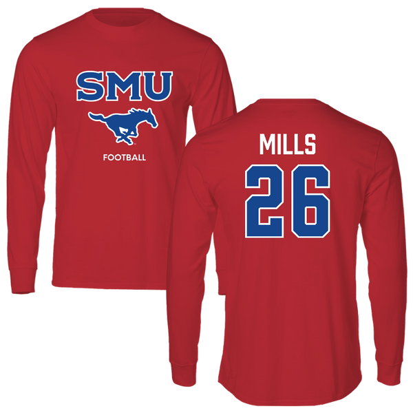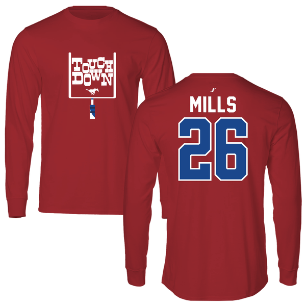 Southern Methodist University Football Canvas Red Touchdown Long Sleeve - #26 Keyshon Mills