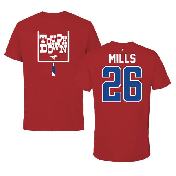 Southern Methodist University Football Canvas Red Touchdown Tee - #26 Keyshon Mills
