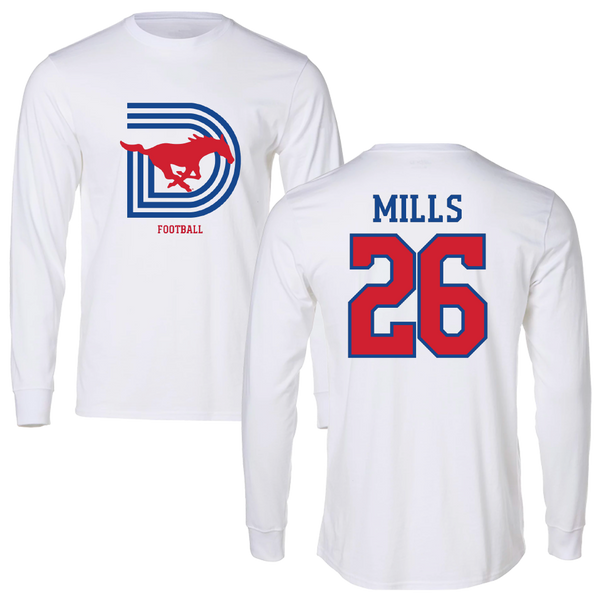 Southern Methodist University Football White Long Sleeve - #26 Keyshon Mills