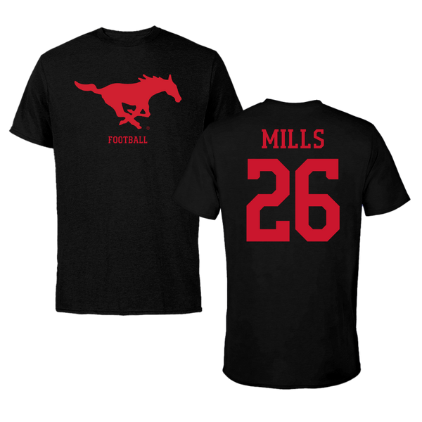 Southern Methodist University Football Black Tee - #26 Keyshon Mills