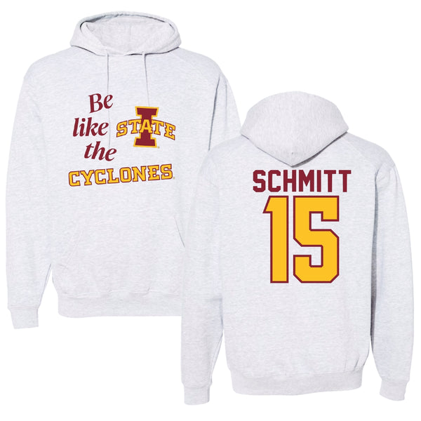 Iowa State University Volleyball Light Gray Be Like Us Hoodie - #15 Kiersten Schmitt
