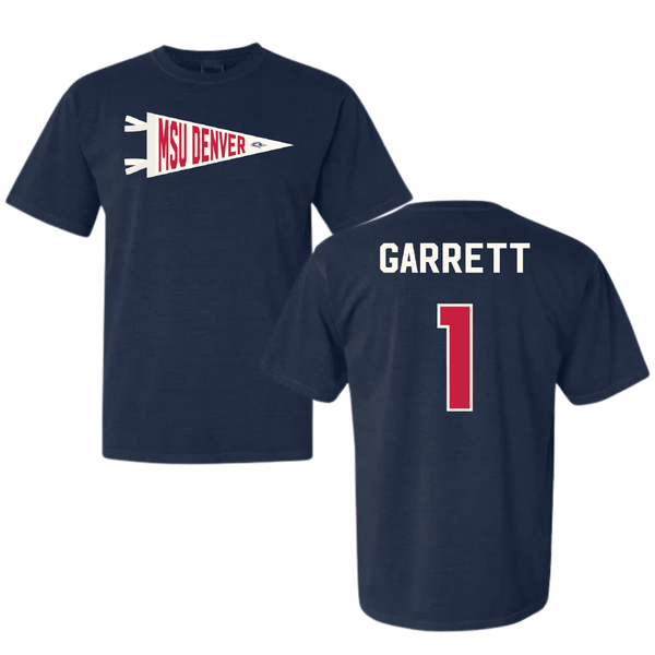 Metropolitan State University of Denver Basketball Navy Pennant Comfort Colors Tee - #1 KJ Garrett