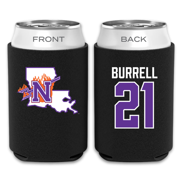 Northwestern State University Football Black Can Cooler - #21 Kolbe Burrell