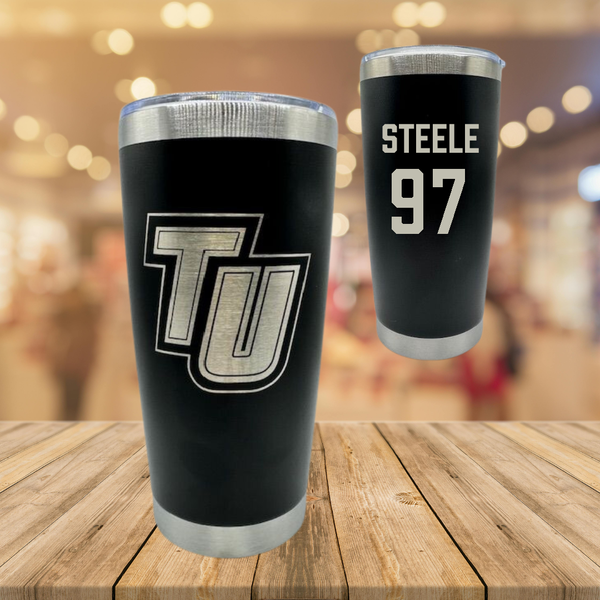 Tusculum University Football Black Stainless Steel Tumbler - #97 Kosiah Steele