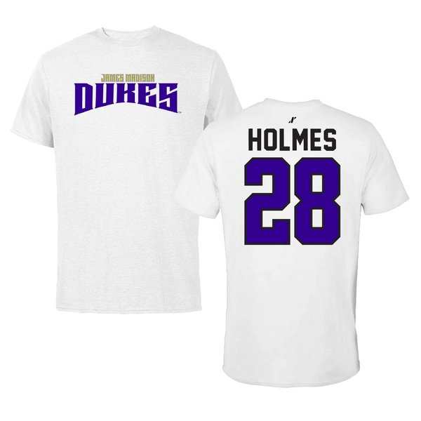 James Madison University Football White Classic Tee - #28 Kye Holmes