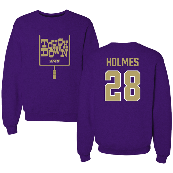 James Madison University Football Purple Touchdown Crewneck - #28 Kye Holmes