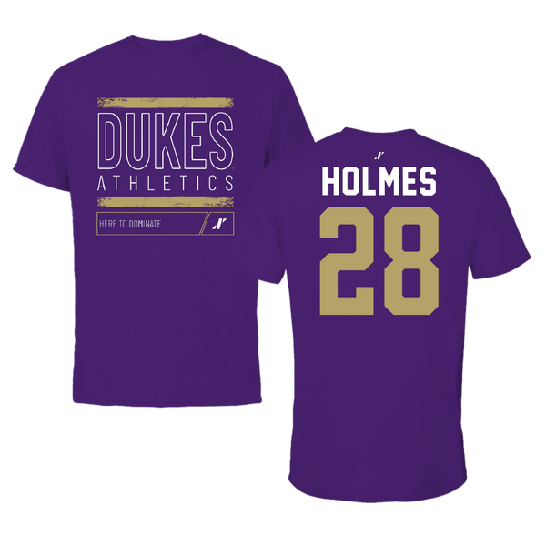 James Madison University Football Purple Dominate Tee - #28 Kye Holmes