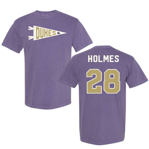 James Madison University Football Purple Pennant Comfort Colors Tee - #28 Kye Holmes