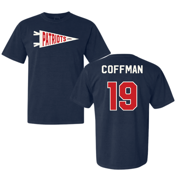 Dallas Baptist University Soccer Navy Pennant Comfort Colors Tee - #19 Kylar Coffman
