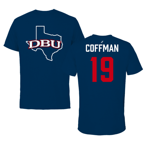 Dallas Baptist University Soccer Navy State Tee - #19 Kylar Coffman