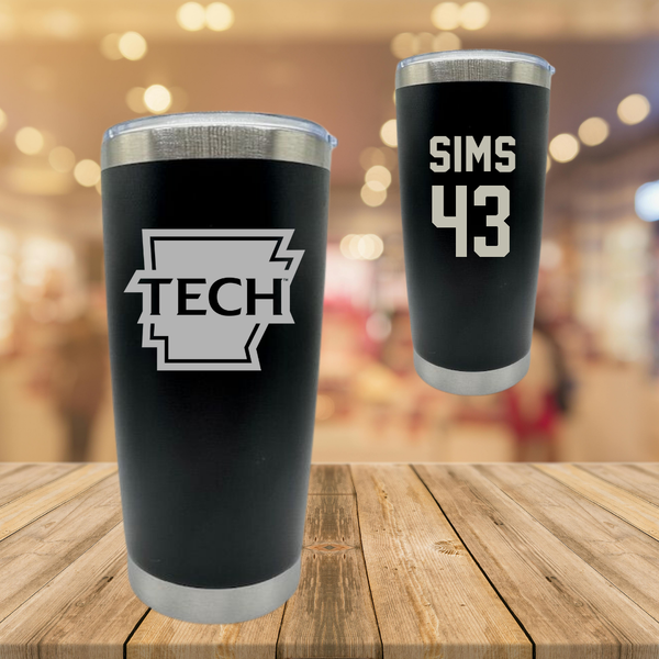 Arkansas Tech University Football Black Stainless Steel Tumbler - #43 Kyrone Sims