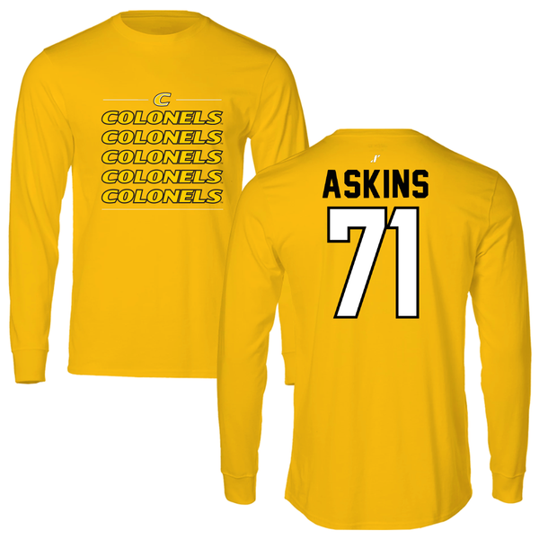 Centre College Football Gold General Long Sleeve - #71 Landon Askins