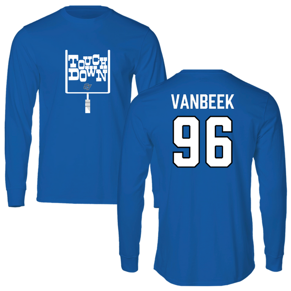 Grand Valley State University Football Blue Touchdown Long Sleeve - #96 Landon VanBeek
