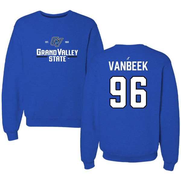 Grand Valley State University Football Blue General Crewneck - #96 Landon VanBeek