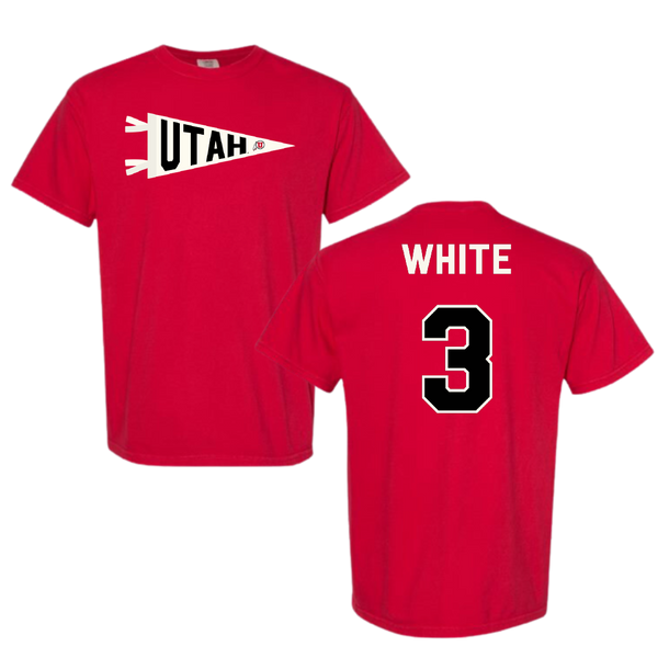 University of Utah Basketball Red Pennant Comfort Colors Tee - #3 Lani White