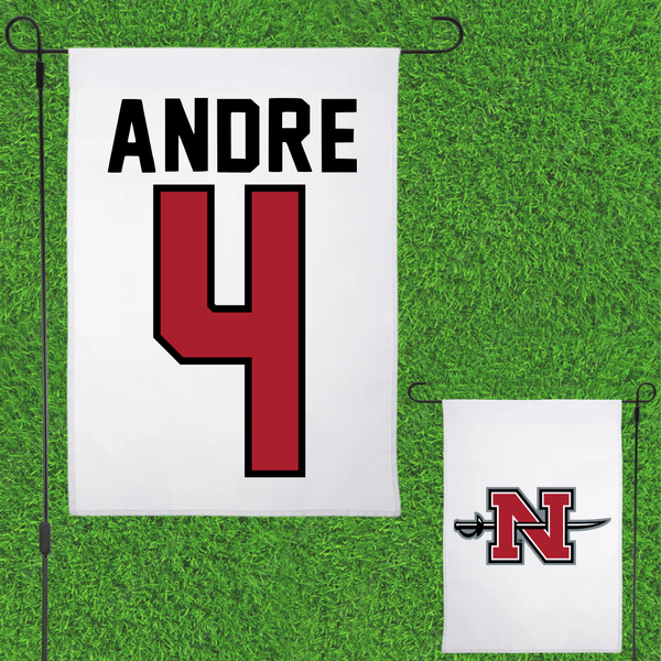 Nicholls State University Soccer White Garden Flag - #4 Lauren Andre