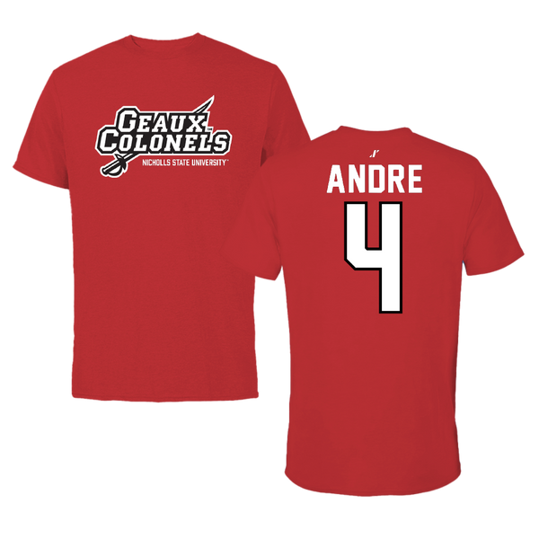 Nicholls State University Soccer Red Tee - #4 Lauren Andre