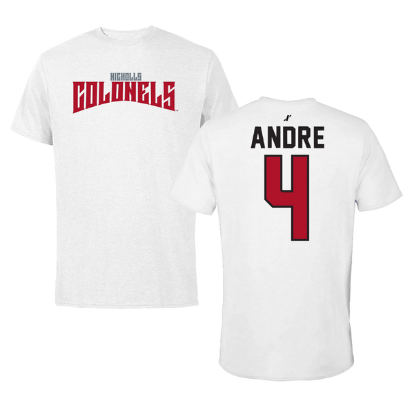 Nicholls State University Soccer White Classic Tee - #4 Lauren Andre