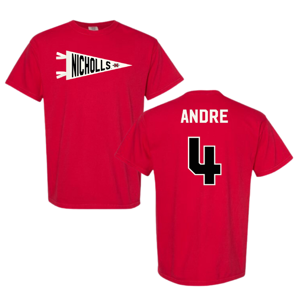 Nicholls State University Soccer Red Pennant Comfort Colors Tee - #4 Lauren Andre