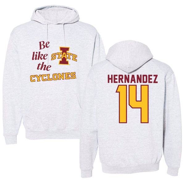 Iowa State University Soccer Light Gray Be Like Us Hoodie - #14 Lauren Hernandez