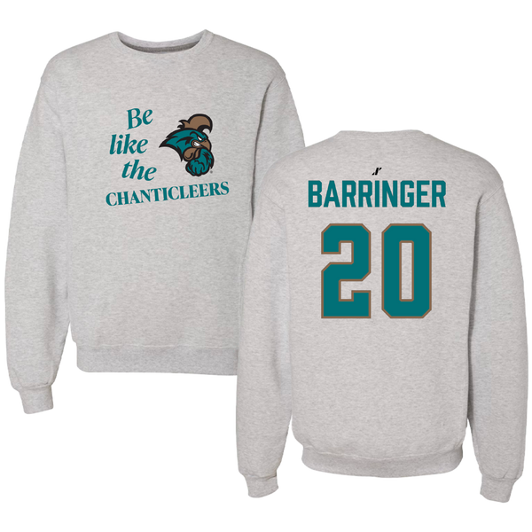 Coastal Carolina University Soccer (W) Light Gray Be Like Us Crewneck - #20 Lauryn Barringer