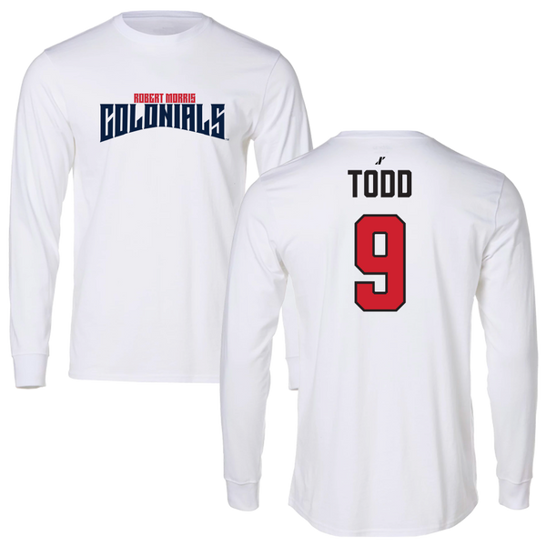 Robert Morris University Volleyball (W) White Mascot Long Sleeve - #9 Layla Todd