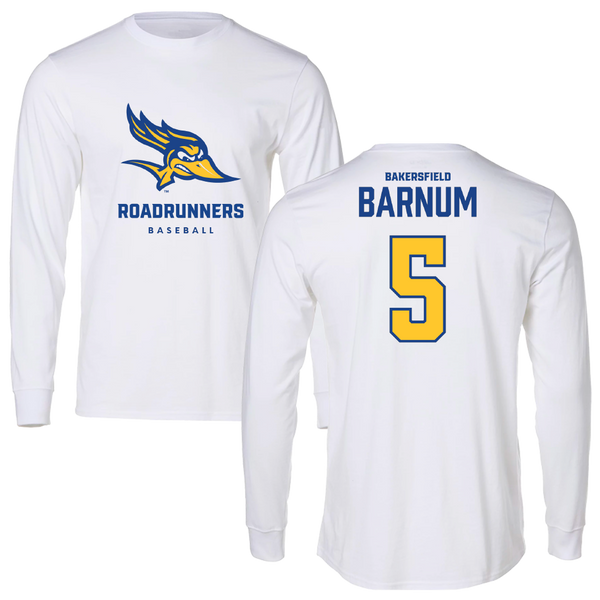 California State University-Bakersfield Baseball White Long Sleeve - #5 Lewis Barnum