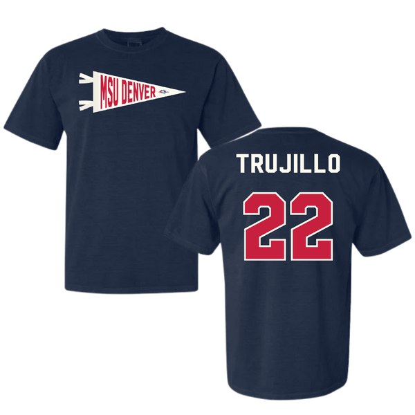 Metropolitan State University of Denver Basketball Navy Pennant Comfort Colors Tee - #22 Lex Trujillo