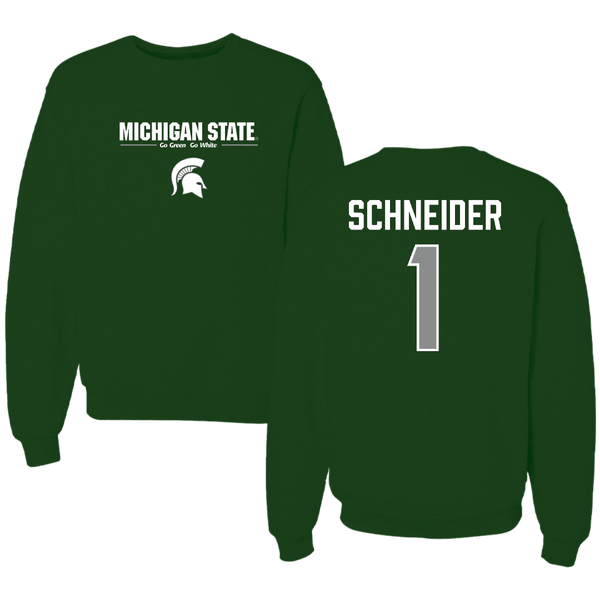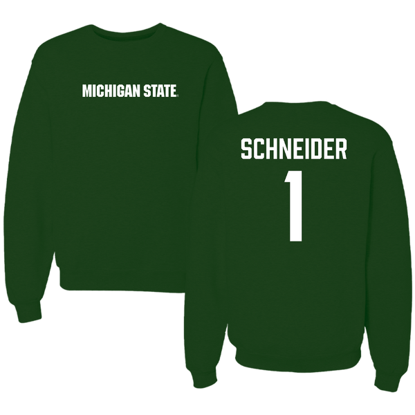 Michigan State University Volleyball Forest Green Crewneck - #1 Lia Schneider