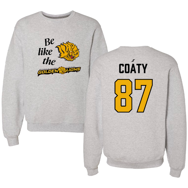 University of Arkansas-Pine Bluff Football Light Gray Be Like Us Crewneck - #87 Livingston Coaty