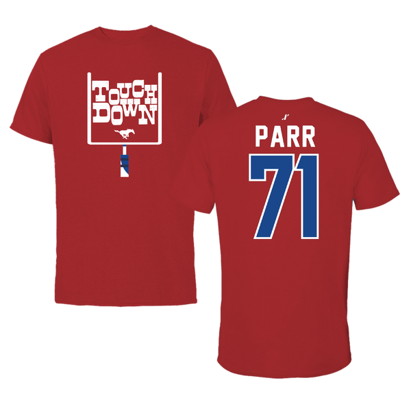 Southern Methodist University Football Canvas Red Touchdown Tee - #71 Logan Parr