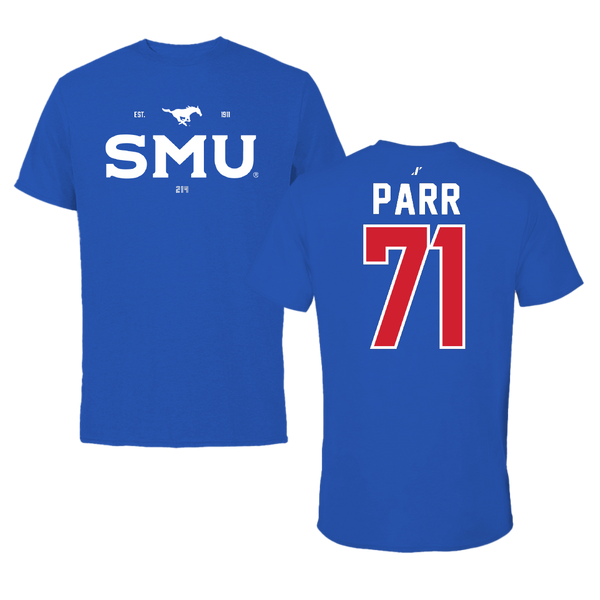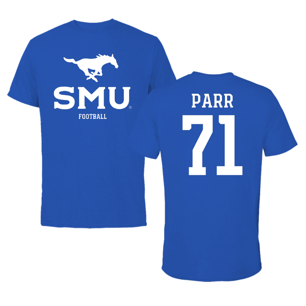 Southern Methodist University Football Blue Mascot Tee - #71 Logan Parr