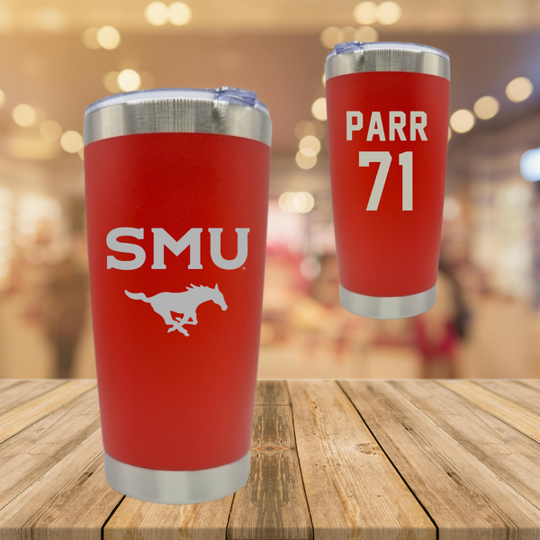 Southern Methodist University Football Red Stainless Steel Tumbler - #71 Logan Parr