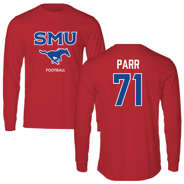 Southern Methodist University Football Red Long Sleeve - #71 Logan Parr